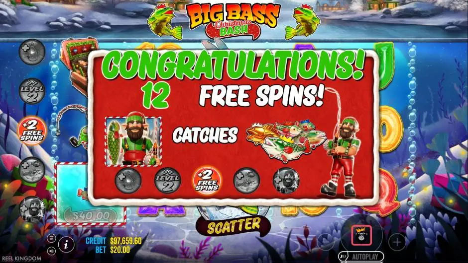 If you’ve played any Big Bass slot before, you know the Free Spins round is where all the fun (and frustration) lives. Christmas Bash doesn’t change that; it just adds a few holiday sprinkles.